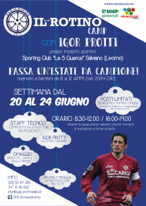 Passa una estate da campione. Dal 20 al 24 giugno all’impianto sportivo delle 5 Querce, Uisp e Promosport organizzano il Rotino Camp. L’iniziativa, riservata ai bambini dai 6 ai 12 anni (nati 2004-2010) vedrà la partecipazione di Igor Protti. Sarà proprio l’ex bomber amaranto ad allenare i ragazzini nel corso delle giornate. Per iscrizioni (che si chiuderanno al raggiungimento di 45 bambini iscritti) contattare: 328 – 53.64.083 e 347 – 13.86.662, mail: [email protected] e pagina Fb “ilrotinoasdcamp”.