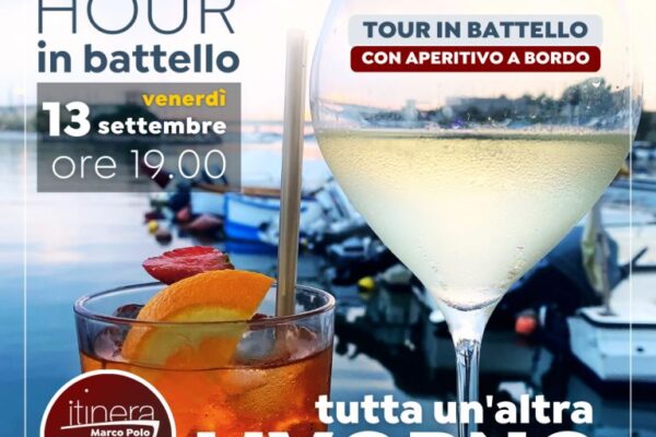 Venerdì 13 settembre torna l'Happy Hour in battello. Appuntamento ore 19 da scali Novi Lena, acquisto biglietti online sul sito www.tourinbattello.livorno.it. INFO: 348 738 2094