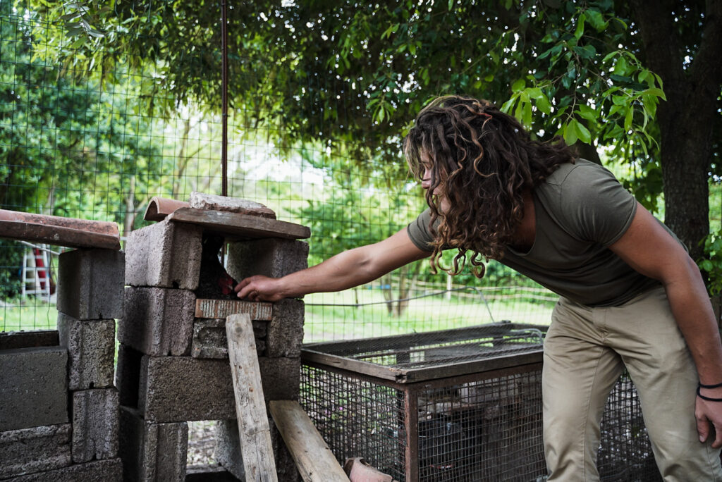 “Eh bella domanda – Si sente un verso di pecora, è quello della sua, utilizzato come suoneria del cellulare – Ero a Londra a fare grafica, tornato da lì dopo aver avuto un’esperienza a livello sanitario non molto piacevole, mi si sono riorganizzate le priorità di vita. Avendo un posto come questo dove non dovevo spaccarmi in due per l’affitto e avere interesse per la salute, ho detto mi metto qua ci metto due polli e guardo cosa succede. L’ho rimessa a nuova, ho costruito il pollaio e ora son qui”.