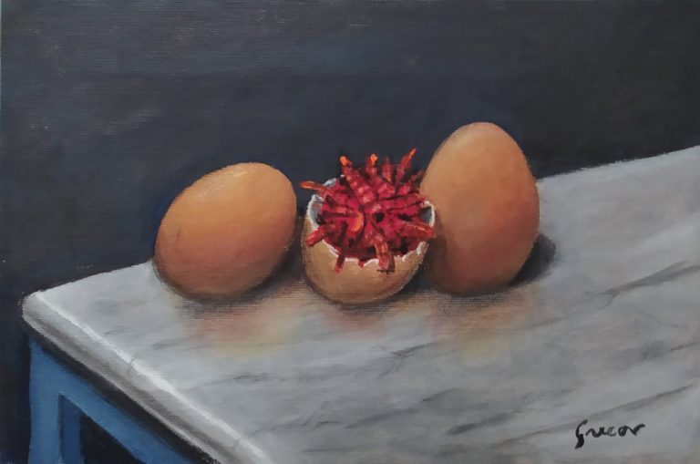Quindici idee che attraverso acrilico, pastelli, tela e cartone tracciano una storia pittorica riproponendo le emozioni legate alle varie fasi dell’emergenza sanitaria. “I primi lavori descrivono i momenti iniziali, quelli peggiori, in cui avevamo paura e la realtà circostante era un’incognita – prosegue entrando nel dettaglio – I dipinti successivi contengono invece speranza per il futuro, per la salvezza dell’umanità. Infine, le ultimissime sono rappresentazioni di gioia, dovute alla scoperta che il vaccino esiste e potrà essere distribuito a ciascuno di noi”.